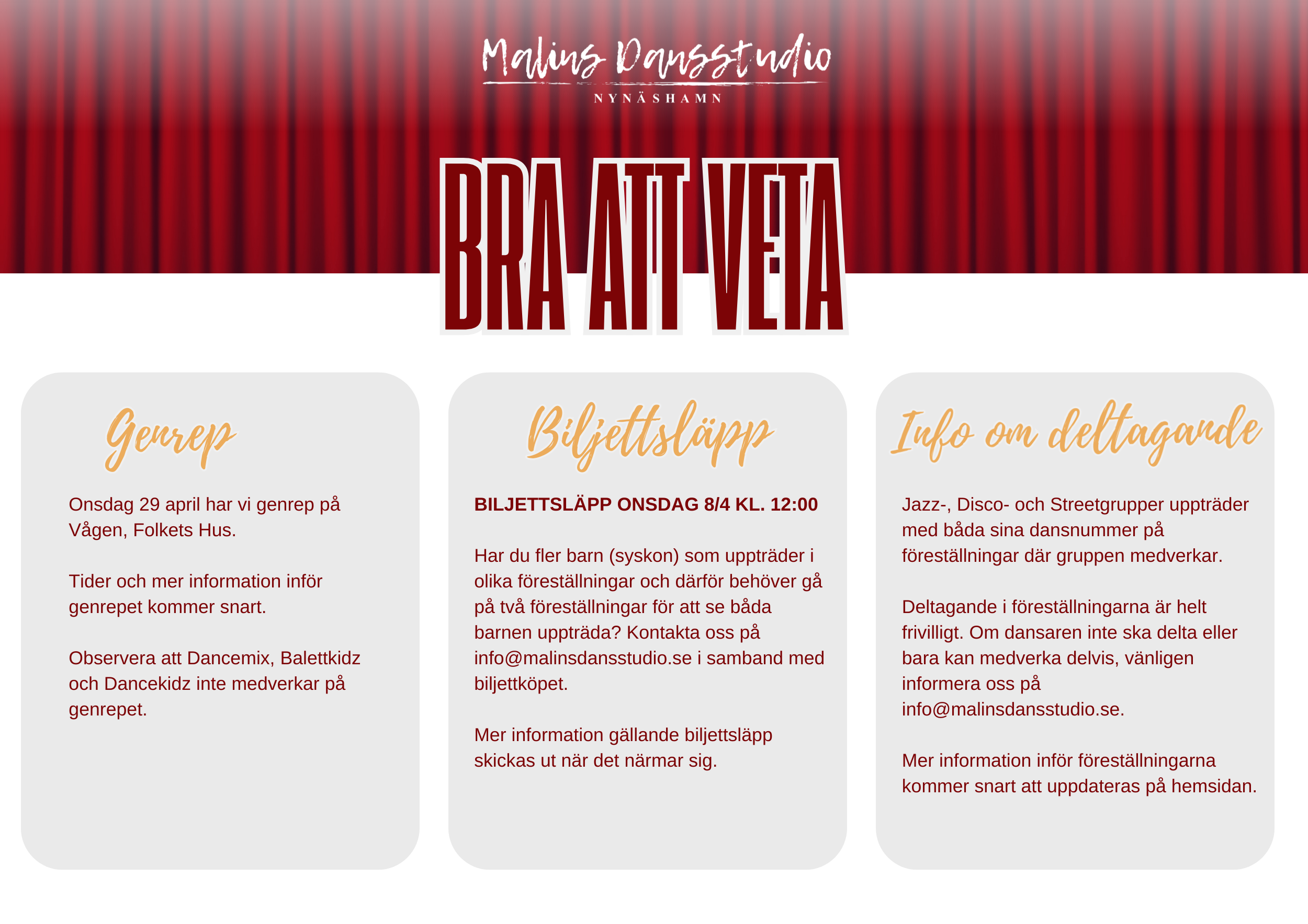 Viktig information till dansare INFÖR FÖRESTÄLLNINGSHELGEN