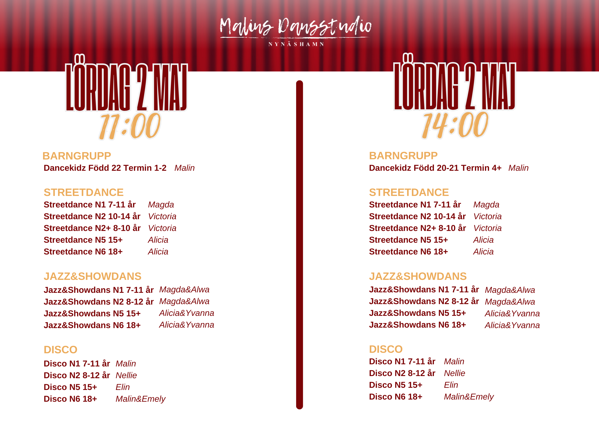 DANSFÖRESTÄLLNINGAR 2-3 MAJ